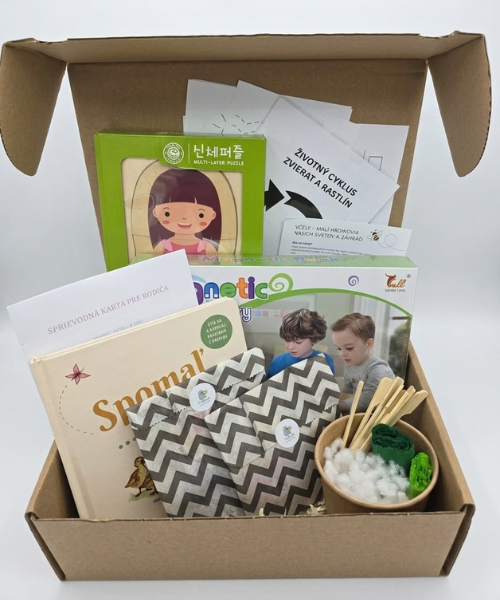 Počas troch mesiacov vám každý mesiac doručíme nový box plný aktivít, prispôsobených veku dieťaťa (2+, 3+, 4+) aj aktuálnemu obdobiu jeho vývinu. Každý box prináša nové podnety na hranie, skúmanie a tvorenie – s dôrazom na radosť z objavovania a vlastné tempo dieťaťa.